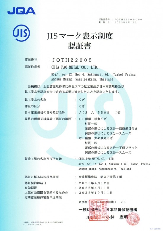 จำหน่ายตะปูม้วน เจียเป่า เมททัล สมุทรปราการ โรงงานผลิต ขายส่ง ลวดแม็ก ลวดเย็บ อุตสาหกรรม (Carton Stitching Wire / Industrial Staples: Fine wire, Fine / Medium, Heavy wire) ตรา LOCK Staples, DUO-FAST รองรับงานสำหรับโรงงานผลิตกล่องกระดาษลูกฟูก ประกอบด้วย ลวดเย็บกล่องกระดาษลูกฟูก (Carton Staples) ขนาด 1.70, 1.90, 2.20, 2.50, 2.70 MM ลูกแม็กซ์เย็บปิดกล่อง (Carton closing staples) ขนาด 3415, 3416, 3515, 3518 MM ลวดคาร์บอนต่ำ ชุบสังกะสี ชุบทองแดง (Galvanized wires / Copper plating wires) ขนาด 0.44, 0.60, 0.70, 0.80, 0.91 MM โรงงานผลิต ขายส่ง ตะปูม้วน (Coil Nails) ตรา Lion, Conical Coil Nails, Hi-load coil nails, Bulk nails ตะปูยิงไม้ สำหรับ ยิงพาเลทไม้ ยิงลังไม้งานแพ็กกิ้งหีบห่อ ล้อไม้ งานตกแต่งภายในเฟอร์นิเจอร์บิ้วอิน งานกรอบรูป เบาะโซฟา ไม้อัดคิ้วบัว คุณภาพดี ราคาถูก มีทุกขนาด ตั้งแต่ 1-1/2 นิ้ว-4 นิ้ว ตะปูแผงขาเดี่ยว Brad Nails ลูกแม็ก ยิงไม้ขาคู่ Staples สำหรับงานเฟอร์นิเจอร์และบิวท์อิน 1006, 1008, 1010, 1013, 1022, F-10, F-20, F-30, F-50 ตะปูม้วน สำหรับงานยิงไม้พาเลท ลังไม้แพ็คกิ้ง ล้อไม้ FC25V1, FC38V1, FC50V5, FS50V5, FS65V5, FC75W1, FC100W3 บริษัท เจียเป่า เมททัล จำกัด ก่อตั้งปี 2001 เลขทะเบียนนิติบุคคล 0115544002141 เราเป็นโรงงานผลิต ขายส่งทั่วประเทศและส่งออกต่างประเทศ ผลิตภัณฑ์ ตะปูม้วน ลูกแม็ก ตราสิงห์โต Lion, DUO-FAST รายใหญ่แห่งหนึ่งของประเทศไทย ผ่านการรับรองมาตรฐาน ISO 9001 and ISO14001 สนใจตะปูม้วน บริษัท เจียเป่า เมททัล จำกัด เบอร์โทรติดต่อ : 0-2709-6921-4, 08-1750-5742 ที่ตั้งโรงงาน : 852/1 นิคมอุตสาหกรรมบางปู ซอย 12 ตำบลแพรกษา อำเภอเมืองสมุทรปราการ สมุทรปราการ 10280