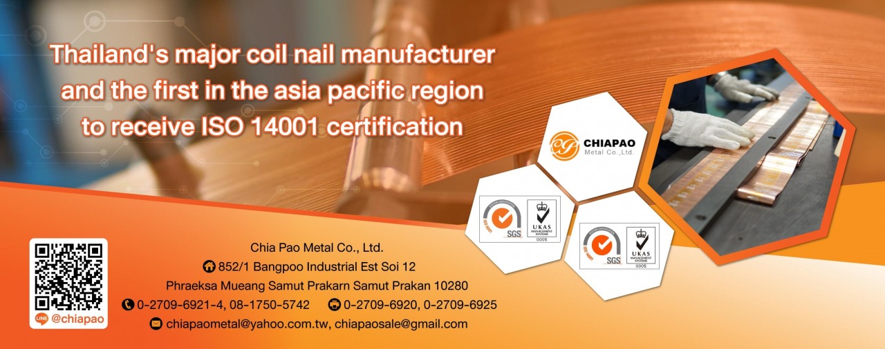 Jiabao Metal Co., Ltd. was established in 2001, company registration number 0115544002141 Manufacturing nails, staples, magnetic staples, Lion, DUO-FAST brand and accept one of the large OEM jobs in Thailand. Certified by ISO 9001 and ISO14001